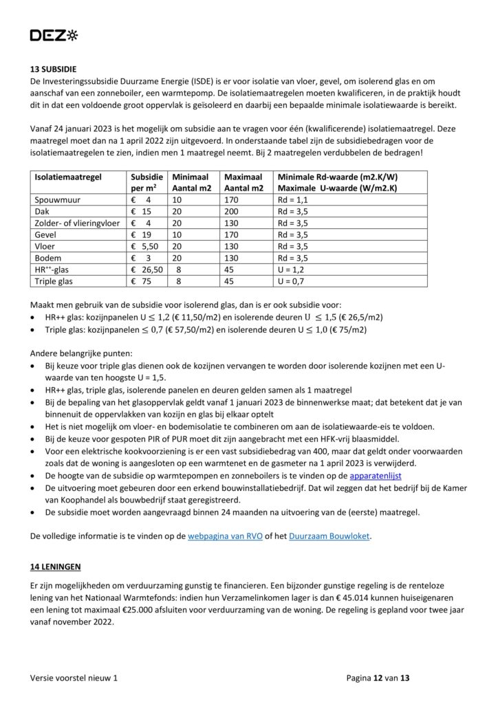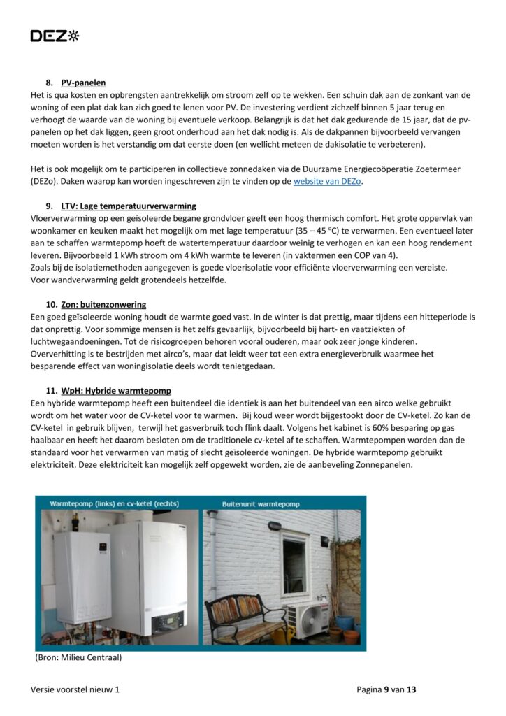 Let op de markt is sterk in ontwikkeling (met name zonnepanelen en warmtepompen en isolatie technieken).